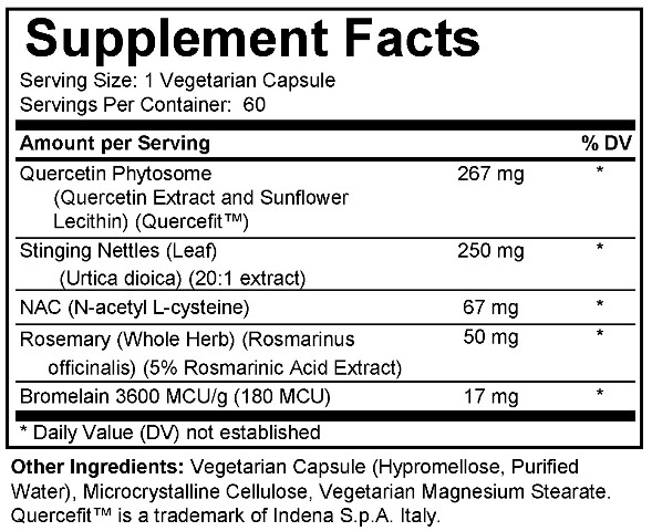 This formula is an all natural nutritional supplement that is designed to provide relief from occasional allergy symptoms such as sneezing, runny nose, itchy and watery eyes. It also has shown benefit in helping support healthy levels of prostate inflammation. It contains large, but safe, concentrations of a number of high potency enzymes and nutrients in meaningful levels to ensure effectiveness.‡