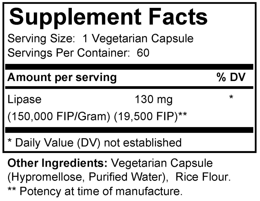 This formula contains large amounts of high-potency lipase enzymes. Lipase may be helpful for those who have difficulty gaining weight or have symptoms from eating fats. When taken on an empty stomach, it supports healthy memory and mental function. This formula may be taken with food to aid in fat digestion or taken on an empty stomach to support nervous system health. ‡