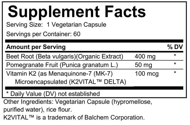 This potent formula supplies herbals and nutrients designed to support vascular health including beet root extract, pomegranate extract and stabilized microencapsulated Vitamin K2 as MK7.‡